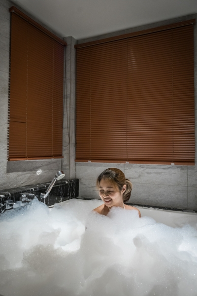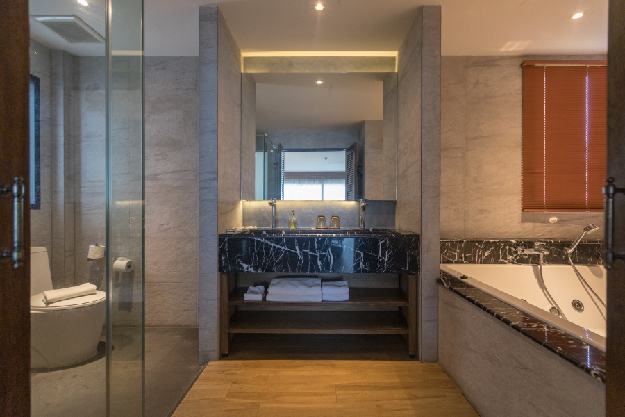 สิ่งอำนวยความสะดวกในห้องพัก มีให้บริการแบบครบครันเลย อ่างจากุชชี่ที่นี่ก็ใหญ่มาก แช่น้ำกันแบบฟินๆ เลย