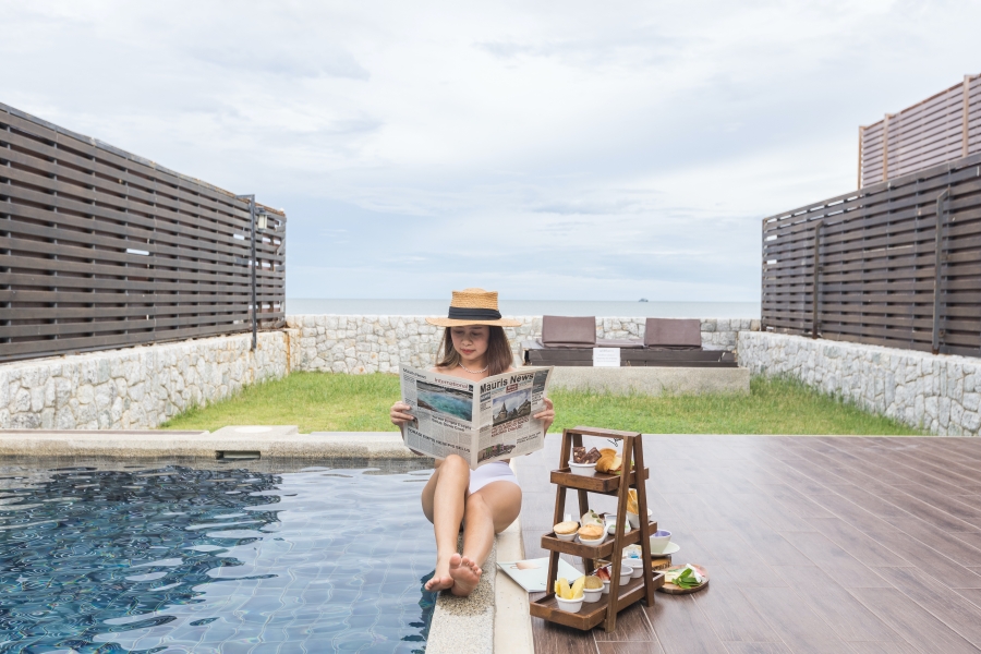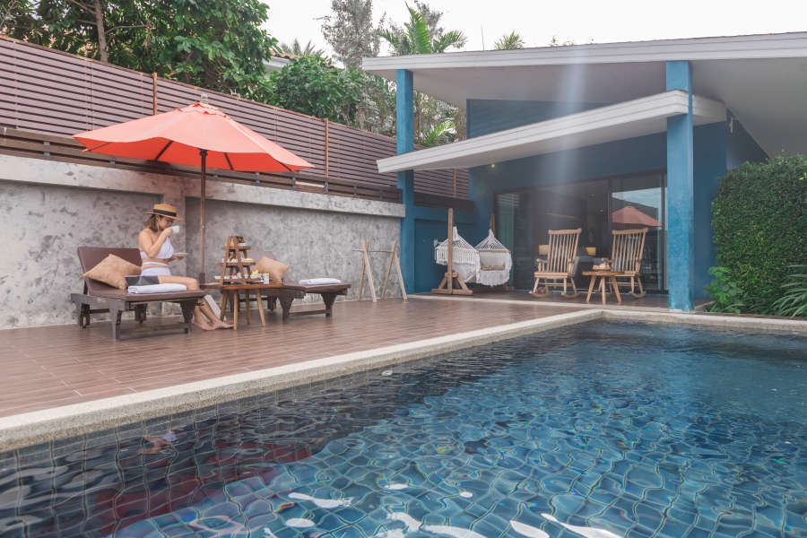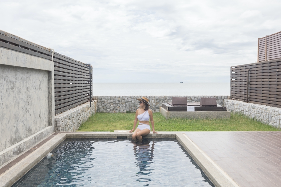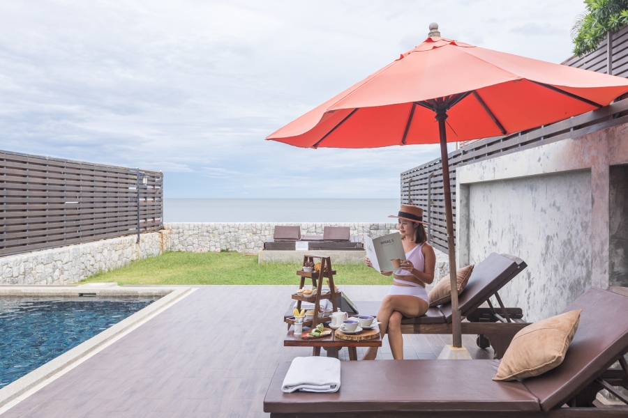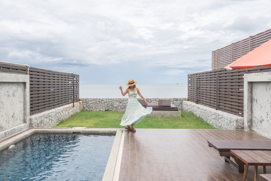 พื้นที่ใช้สอยภายในวิลล่ากว้างขวางมาก มีสระว่ายน้ำส่วนตัว ที่สำคัญมองเห็นทะเลแบบชัดเจนเลย บอกเลยว่ามีความเป็นส่วนตัวสุดๆ
