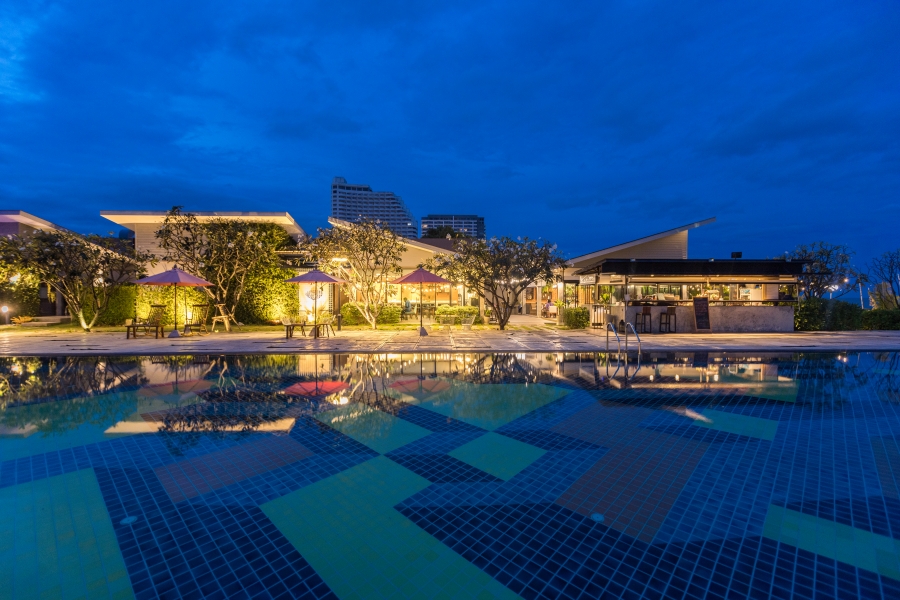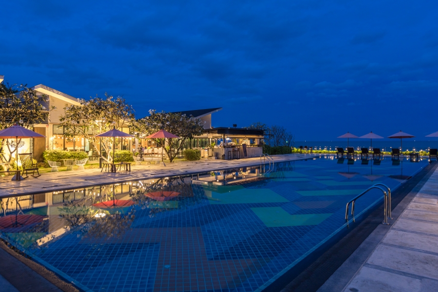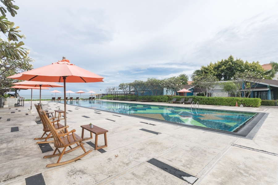 นอกจากภายในวิลล่าแล้ว ที่นี่ยังมีสระว่ายน้ำส่วนกลางที่ติดอยู่กับชายหาด คอยให้บริการด้วย ลงเล่นน้ำกันได้แบบเพลินๆเลย