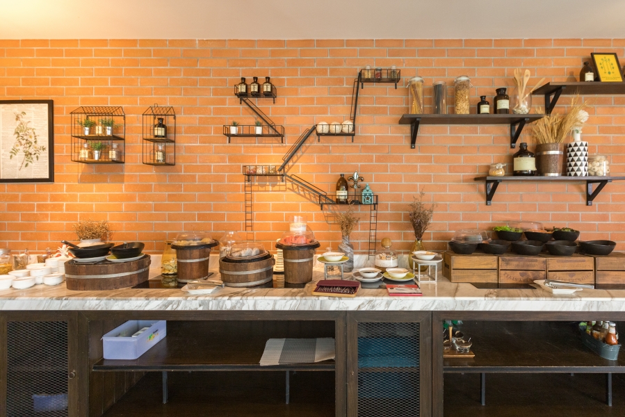 ให้ลูกค้าเลือกตักได้เลย มีเมนูให้เลือกหลากหลายมากทั้งเมนูอาหารไทย และนานาชาติ