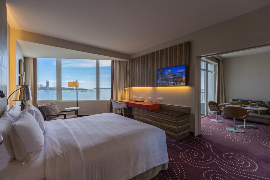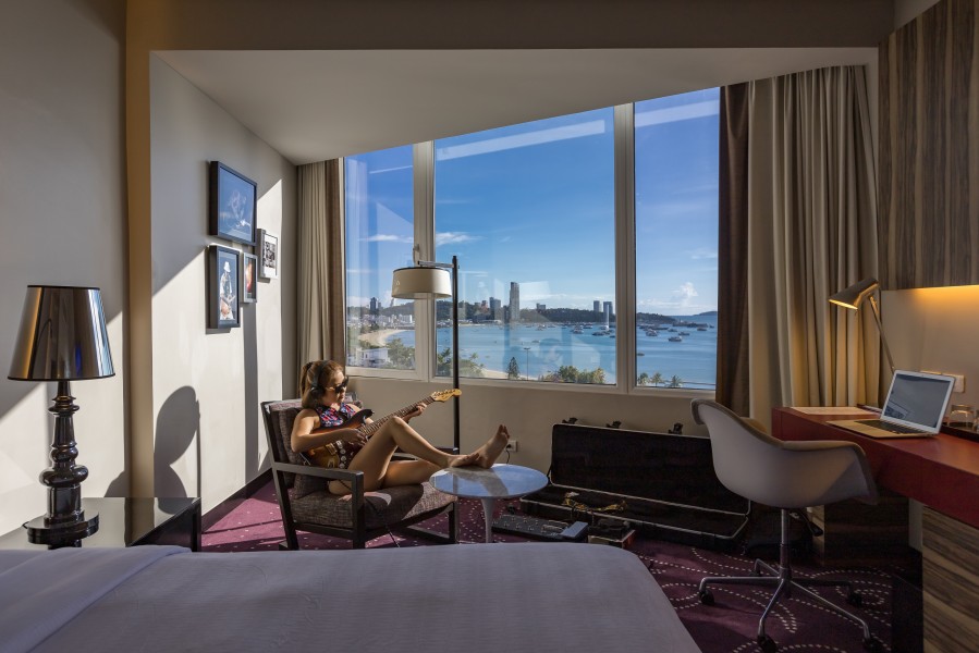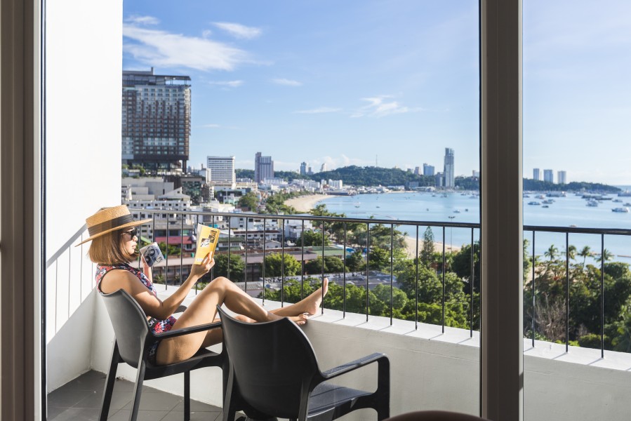 และระเบียงห้องสามารถชมวิวชายหาดพัทยาแบบพาโนรามิค หรือ ใครที่ชอบเล่นดนตรี