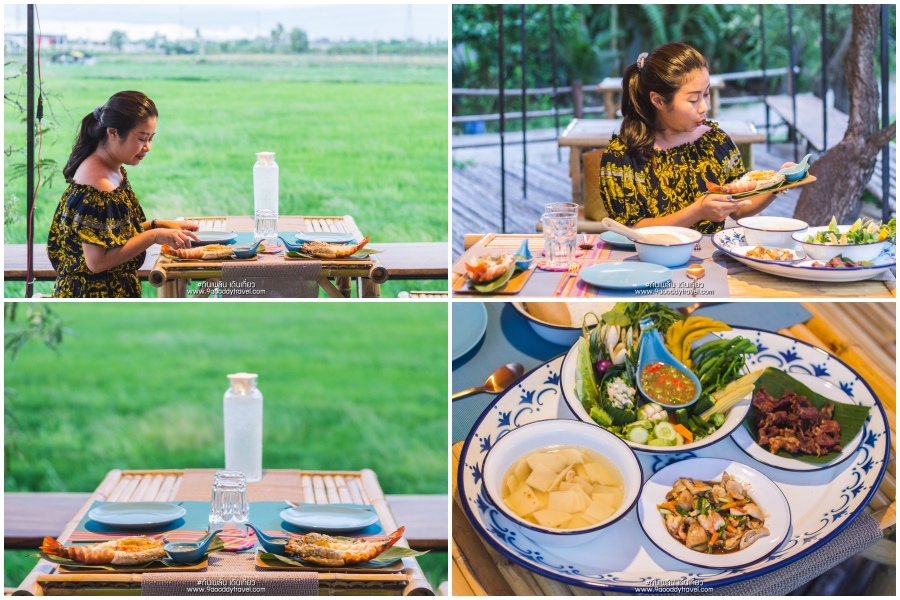 ด้านหลังที่เรานั่งทานข้าวจะเป็นทุ่งนา บรรยากาศถ่ายรูปได้แบบชิลล์ๆ
