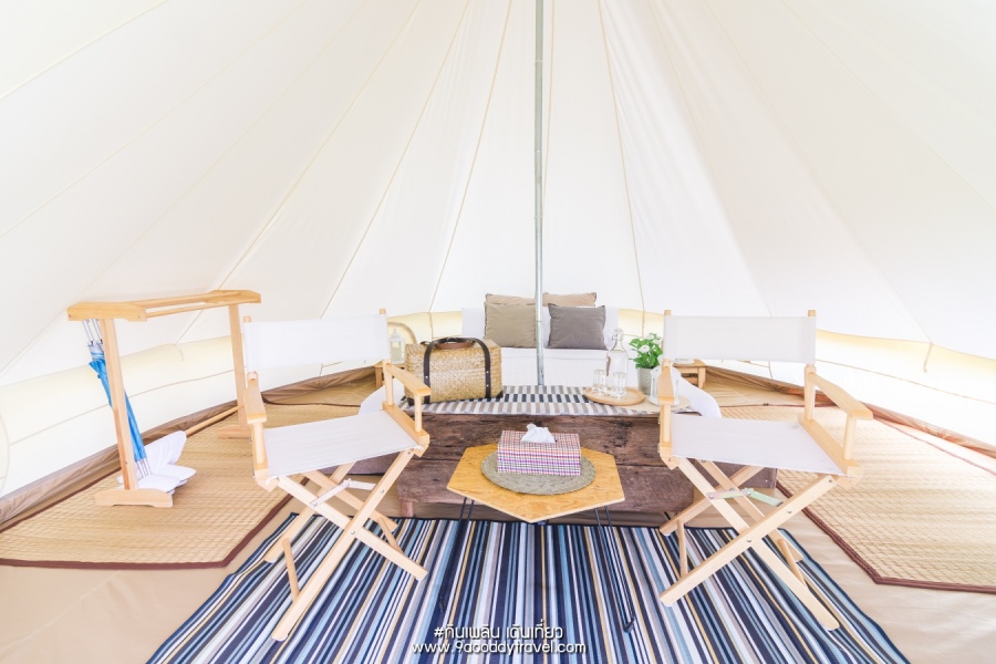 ภายในเต็นท์มีข้าวของเครื่องใช้เยอะมาก ที่นอนกว้าง นอนสบาย มีเครื่องปรับอากาศ ช่วงกลางวันจะร้อนหน่อย แต่ตกเย็นแล้วจะชิลล์มาก