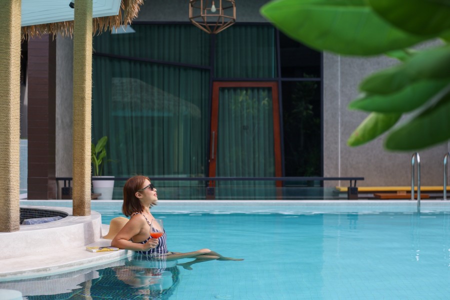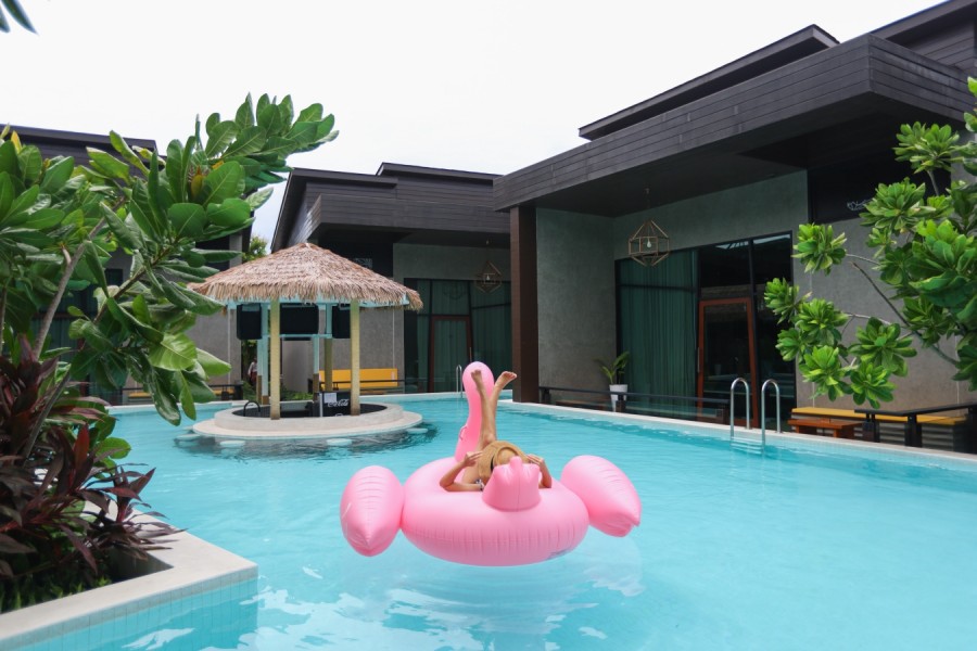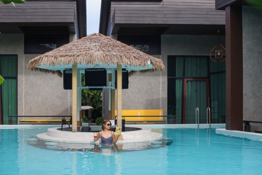 ที่สระส่วนกลางจะมี พิสซิน่า พูล บาร์ คอยให้บริการเครื่องดื่มสำหรับลูกค้า มุมนี้คือน่ารักมาก ถ่ายรูปสวยเลย