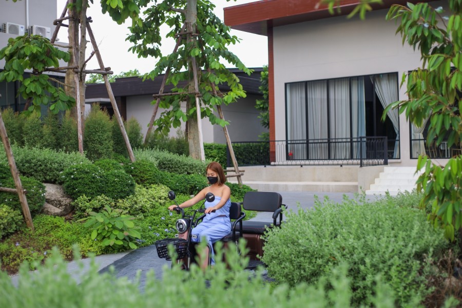 และลูกค้าที่อยากชมบรรยากาศรอบๆ ที่พัก เค้าจะมีรถจักรยาน และ รถมอเตอร์ไซค์ไฟฟ้า คอยให้บริการฟรี สามารถติดต่อที่ล็อบบี้ได้เลยค่ะ