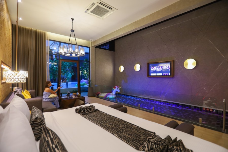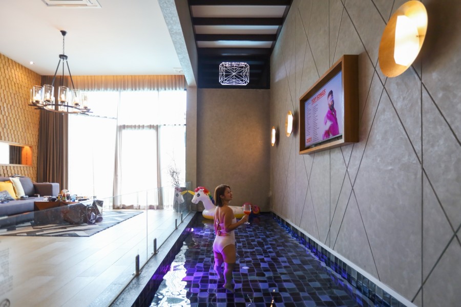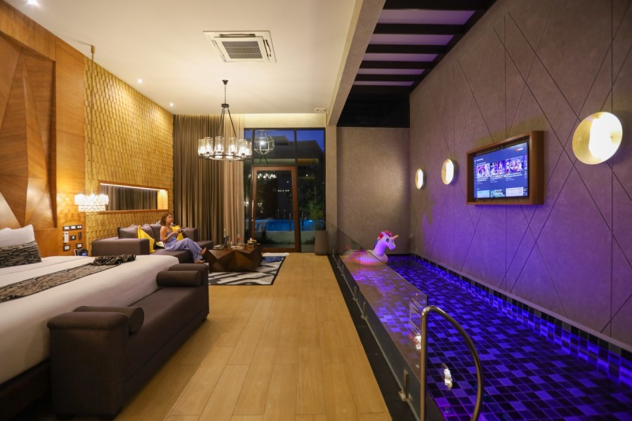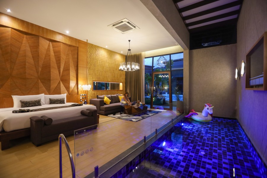ภายในห้องมีขนาด 100.10 ตร.ม. เข้าไปแล้วแบบอลังการมาก ห้องพักจะเป็นแนวยาว พร้อมด้วยสระน้ำอุ่นในห้องส่วนตัว