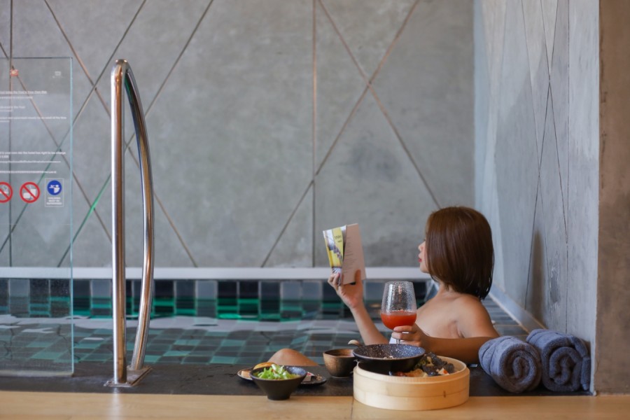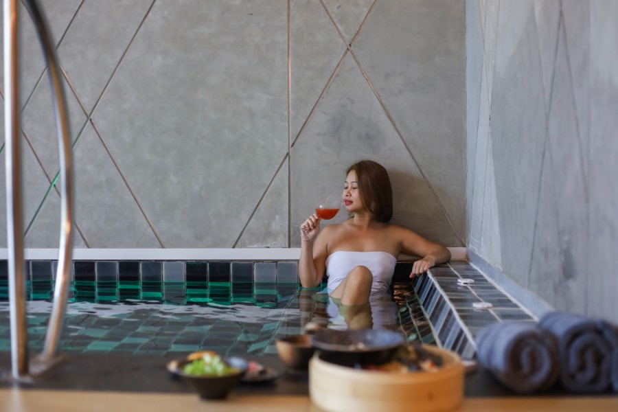 ที่สำคัญ มีสระน้ำอุ่นในห้องทุกหลัง ได้ฟีลเหมือนแช่ออนเซ็น แบบ private เลย ดีต่อใจมาก