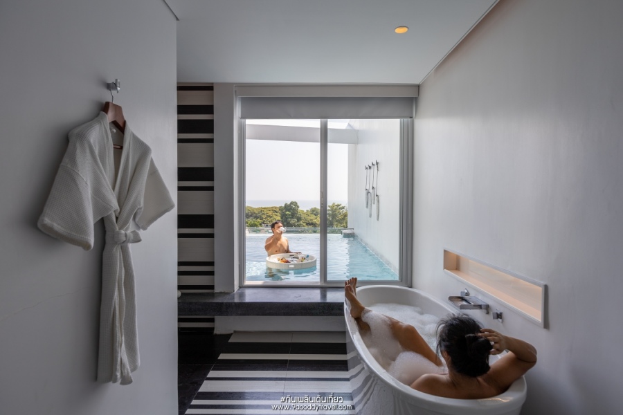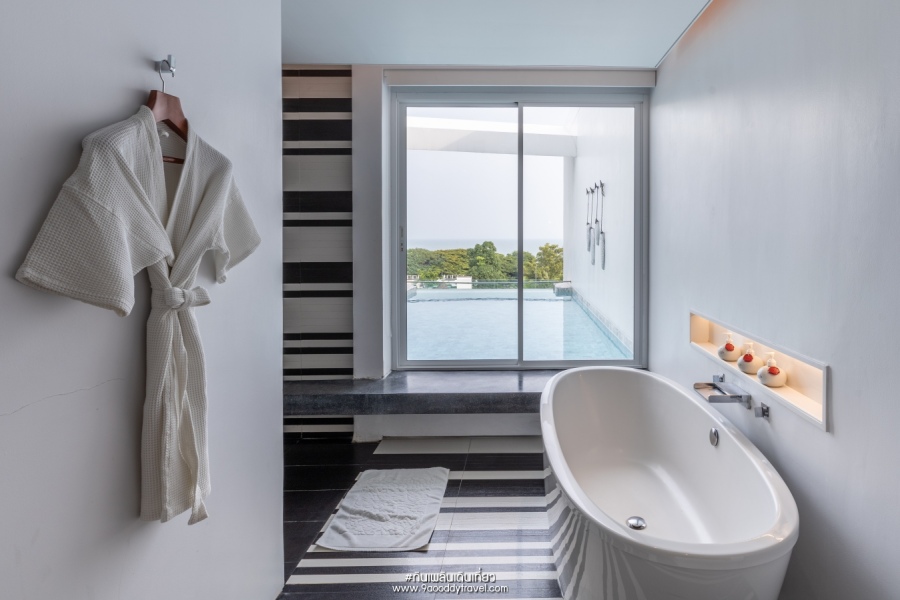 ชอบการตกแต่งในห้องน้ำ คือทะลุกับสระว่ายน้ำส่วนตัว มองเห็นวิวทะเลไกลๆคือฟินสุดๆเลยค่ะ นอนแช่อ่างในห้องน้ำดูวิวทะเล ก็ไม่ต้องกลัวจะมีใครเห็น เป็นส่วนตัวสุดๆ 555