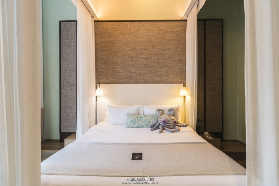 ภายในห้องพักตกแต่งโทนสีขาวสบายตา แยกเป็นสัดส่วนห้องนอน ห้องน้ำ เตียงนอนที่นี่ใหญ่มากกกกก