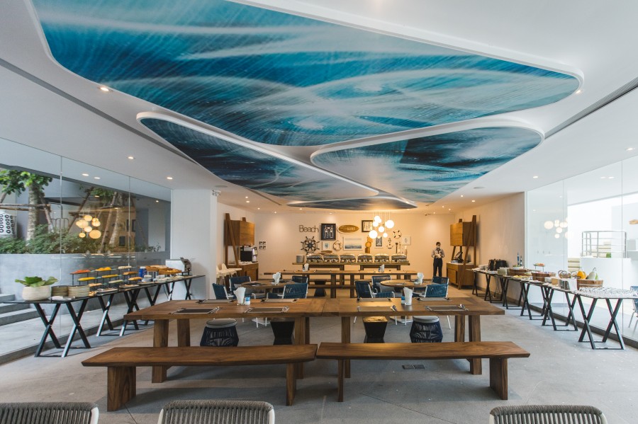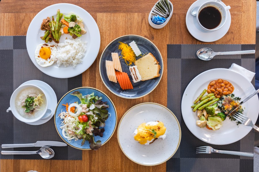 อาหารเช้าที่นี่จะเป็นแบบบุฟเฟ่ต์ ทั้งเมนูอาหารไทย นานาชาติ และเครื่องดื่ม เบเกอรี่ทั่วไป มีให้เลือกหลากหลาย