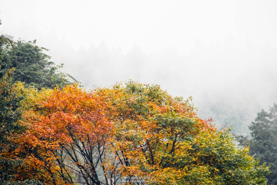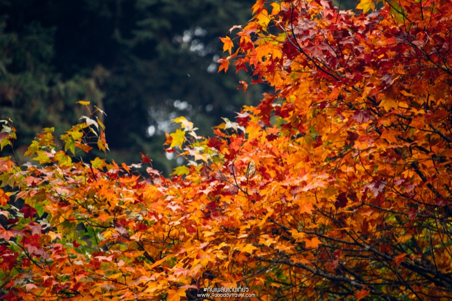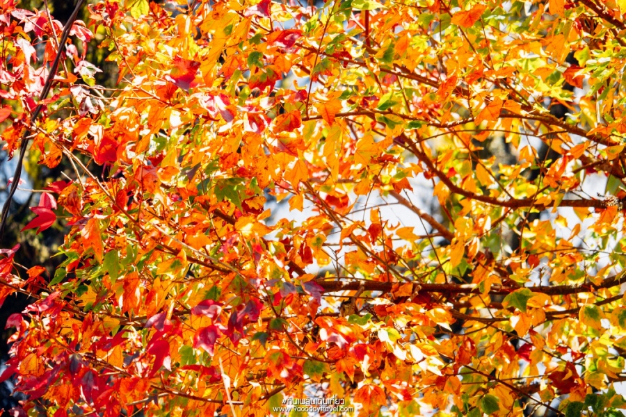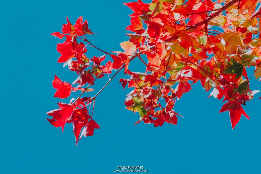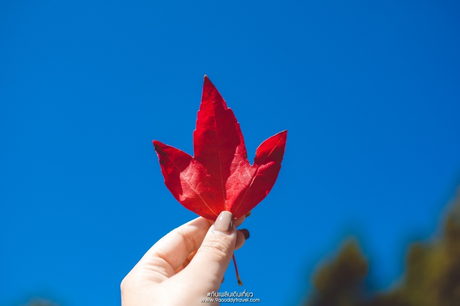 ซึ่งช่วงที่เราเดินทางไปนั้น (เดือน พฤศจิกายน) เป็นช่วงใบไม้เปลี่ยนสี พอดี ทำให้เราได้เห็น ใบเมเปิ้ลแดง