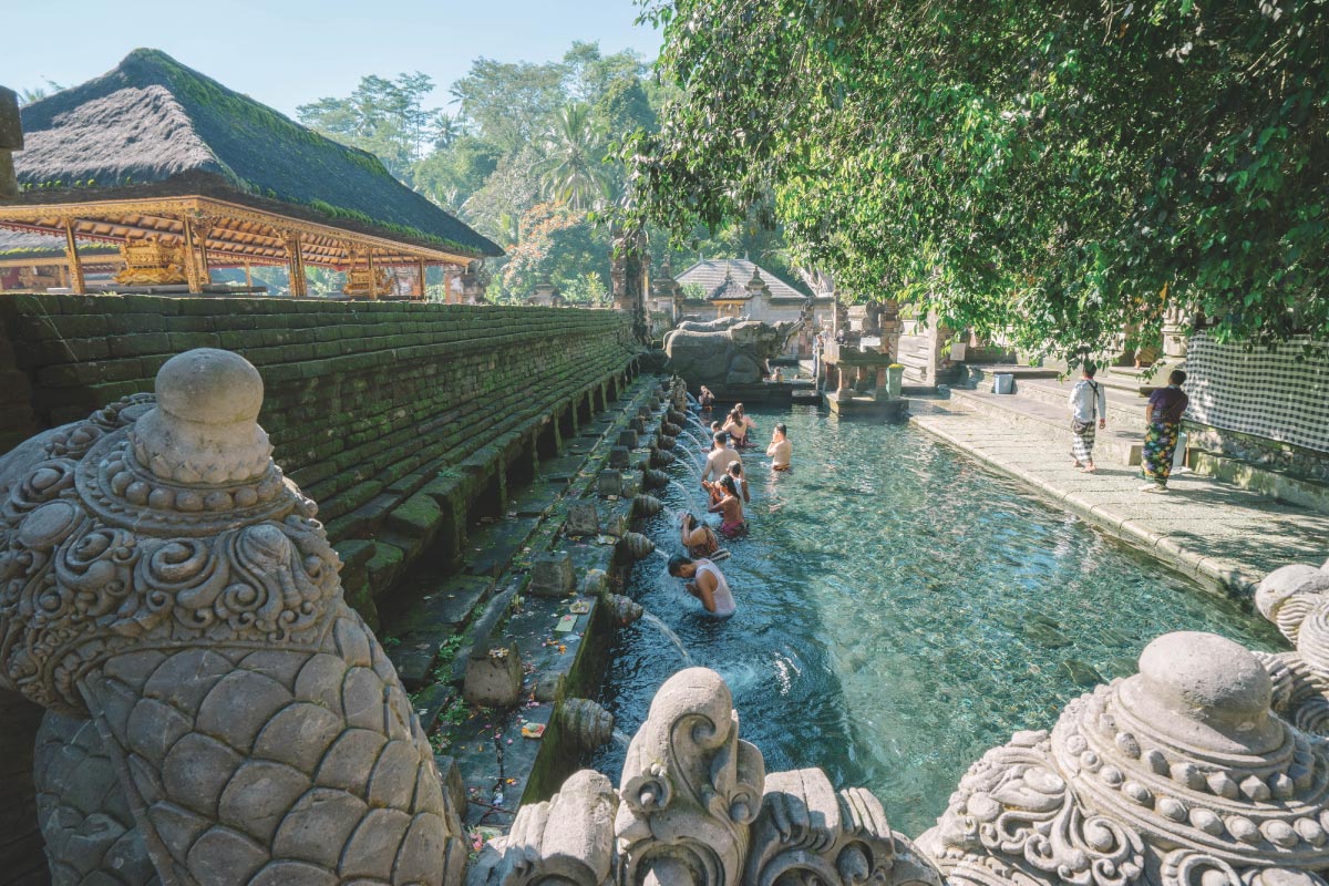 วัดน้ำพุศักดิ์สิทธิ์ หรือวัดเทมภักสิริงค์ ศาสนสถานอันเก่าแก่ของบาหลี และเป็นที่เคารพสักการะของคนบาหลี ภายในวัดมีบ่อน้ำพุธรรมชาติที่ผุดขึ้นจากตาน้ำใต้ดิน อายุนานนับพันปี เชื่อกันว่าพระอินทร์เป็นผู้บันดาลให้เกิดน้ำผุดแห่งนี้ ซึ่งหากได้อาบน้ำหรือดื่มกินจะเป็นสร้างความเป็นสิริมงคลให้กับชีวิตและยังช่วยขับไล่สิ่งชั่วร้ายออกไป รวมทั้งยังสามารถช่วยรักษาโรคภัยไข้เจ็บได้ ฉะนั้น จะเห็นได้ว่าในช่วงวันสำคัญของทุกปี ทั้งชาวบาหลีเองและนักท่องเที่ยวต่างแห่แหนต่อแถวยาว เพื่อเข้ามายังวัดน้ำพุศักดิ์สิทธิ์แห่งนี้กันเป็นจำนวนมาก เป็นที่เที่ยวบาหลีที่ไม่ควรพลาดโดยเด็ดขาดเลยทีเดียว