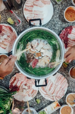– มื้อเย็นกินจิ้มจุ่มข้างที่พัก 391,000 กีบ หรือ 800 บาท คนละ 100 บาท