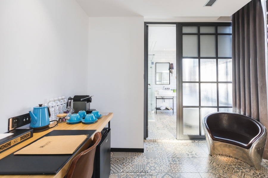 ห้องน้ำในตัว มีแคปซูลกาแฟ NESPRESSO , ชาผลไม้ ทไวนิงส์ ภายในห้องพัก ตกแต่งเน้นโทนสีขาว ดูสะอาด สบายตา