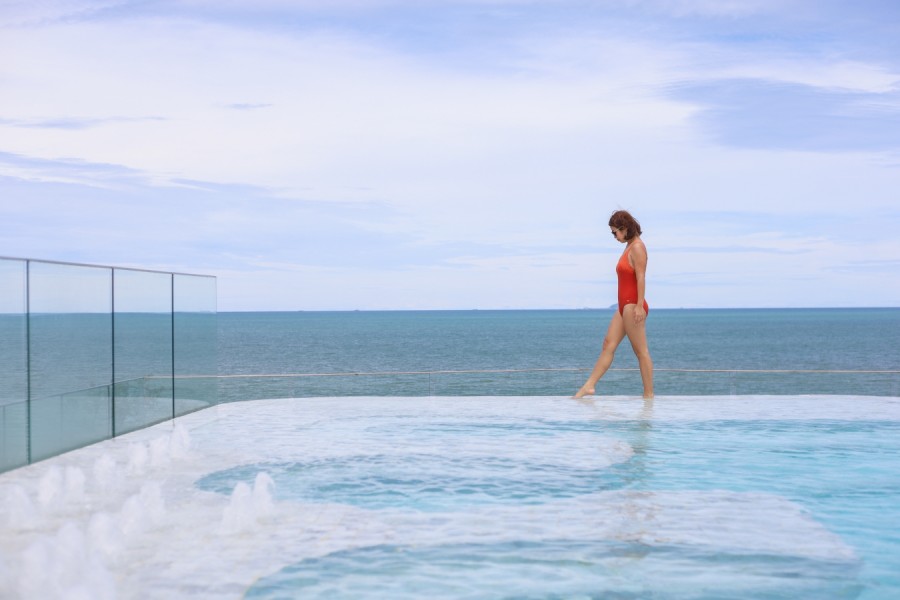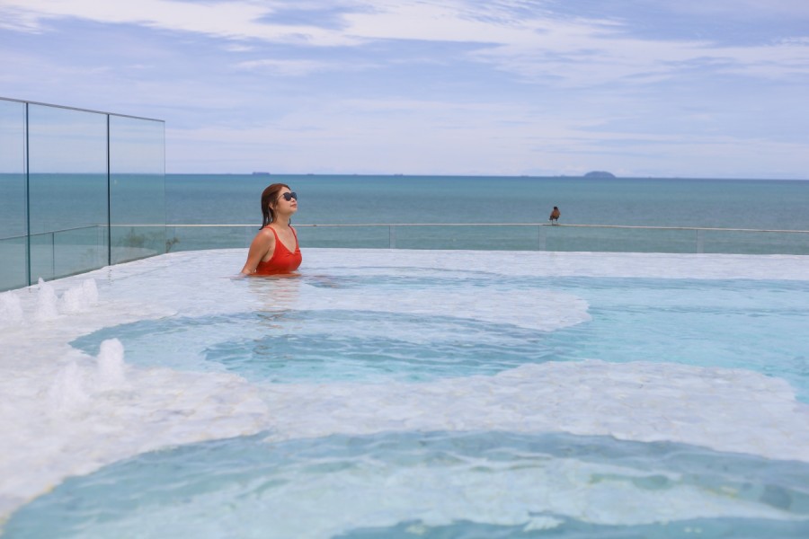 ไฮไลท์ของที่นี่เลย คือ สระว่ายน้ำแบบอินฟินิตี้พร้อมวิวทะเล เป็นสระระบบน้ำเกลือ อยู่บนดาดฟ้า วิวสุดปัง และมีอ่างจากุซซี่
